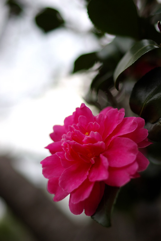 その公園の端っこ、道路に面してやや日陰がちな一画に、忘れられたような寒ツバキの花が残っていた。