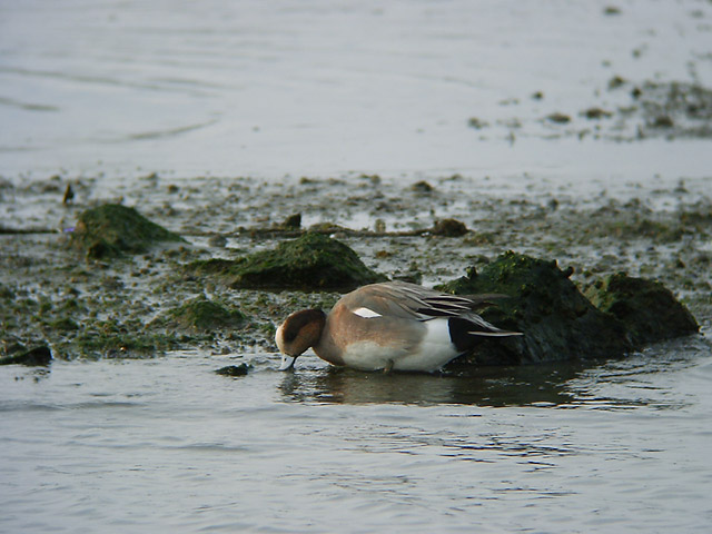 干潟のヒドリガモ集団の中に、アメリカヒドリが混じってた。