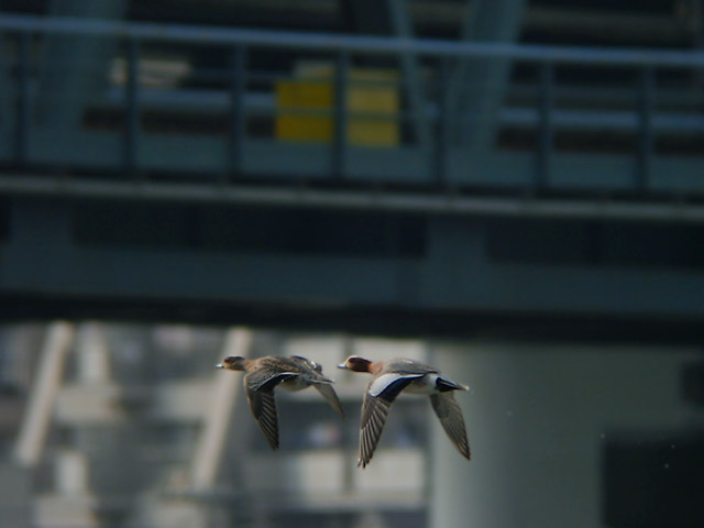 だって日陰のコガモ撮ってるときに飛んできたもんで・・・。