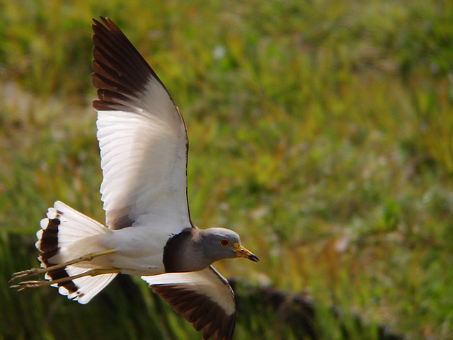 テリトリーに近づいたカルガモを威嚇するケリ↓