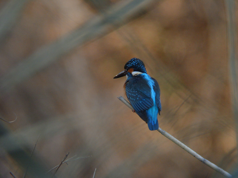 せっかく見つけた彼はまばらに生えた葦の葉に隠れるようにとまっていました。