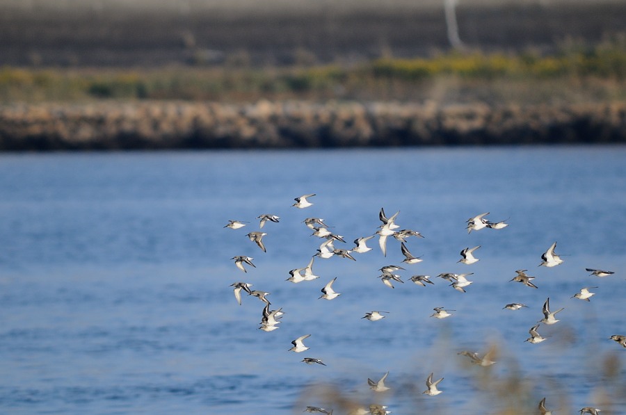 突然ハマシギが飛び立った 2012年10月撮影 [Nikkor Ai 600mmF5.6S<New> & D300]