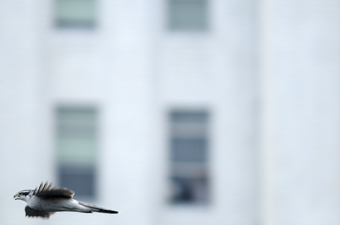ハイタカ、市民の森から外堀を越えて豊国神社方面へ 2011年11月26日撮影