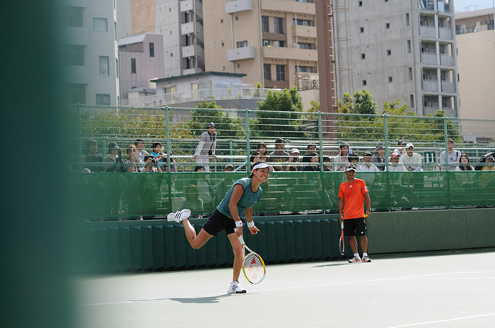 ここ靱公園にはテニス場があって、国際的な大会もよく行われています。