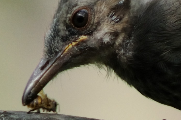 すぐ近くではシジュウカラの若がちっちゃなバッタを食べてました。