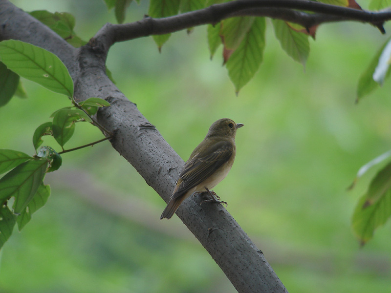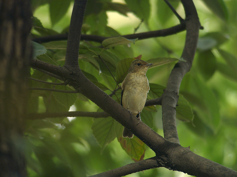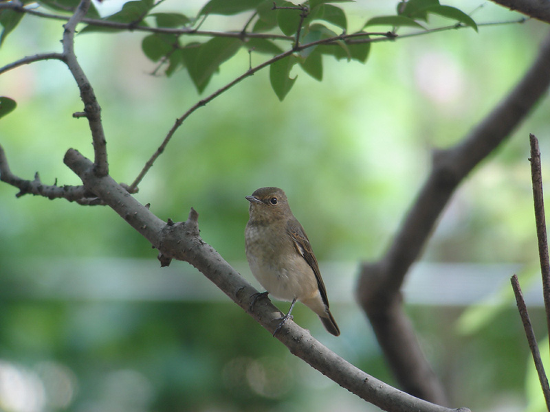 キビタキの♀でしょうか、褐色の背中と薄いクリーム色を帯びた白いおなかが見えました。