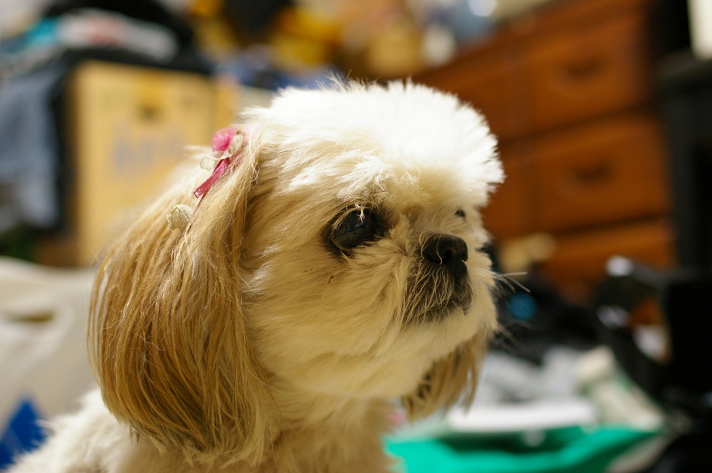 モデル犬はシー・ズーのルーニィさんです。背景がごちゃごちゃしてるのはご勘弁。