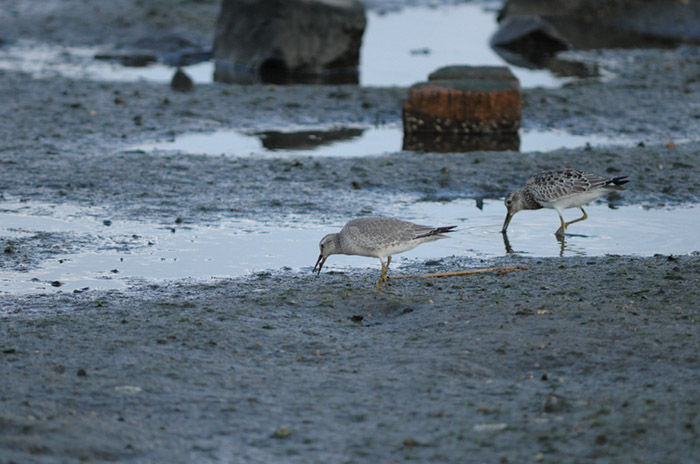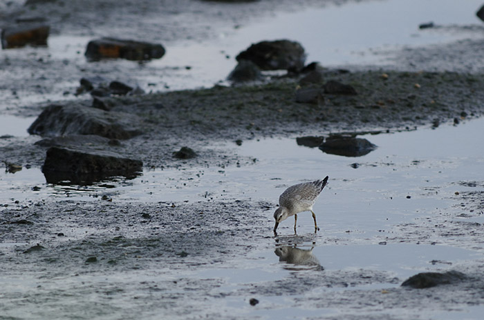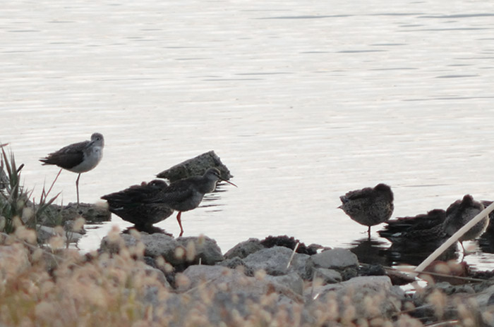 特に珍しいのがいるわけでもなく・・と思いつつレンズを向けた先に、赤っぽい脚のシギが。